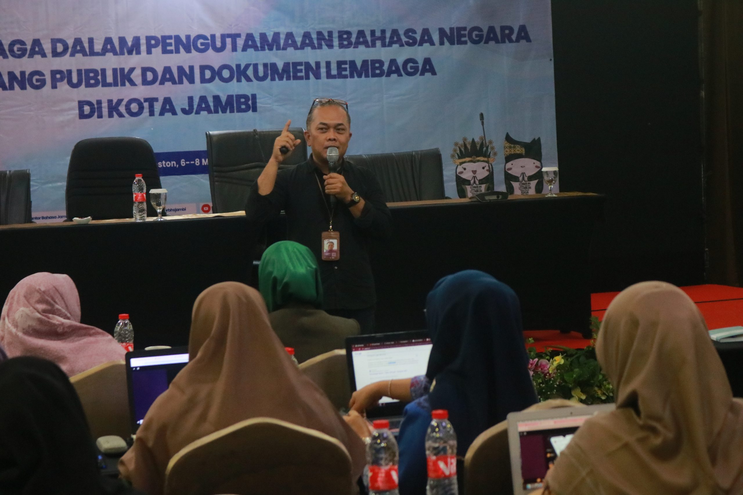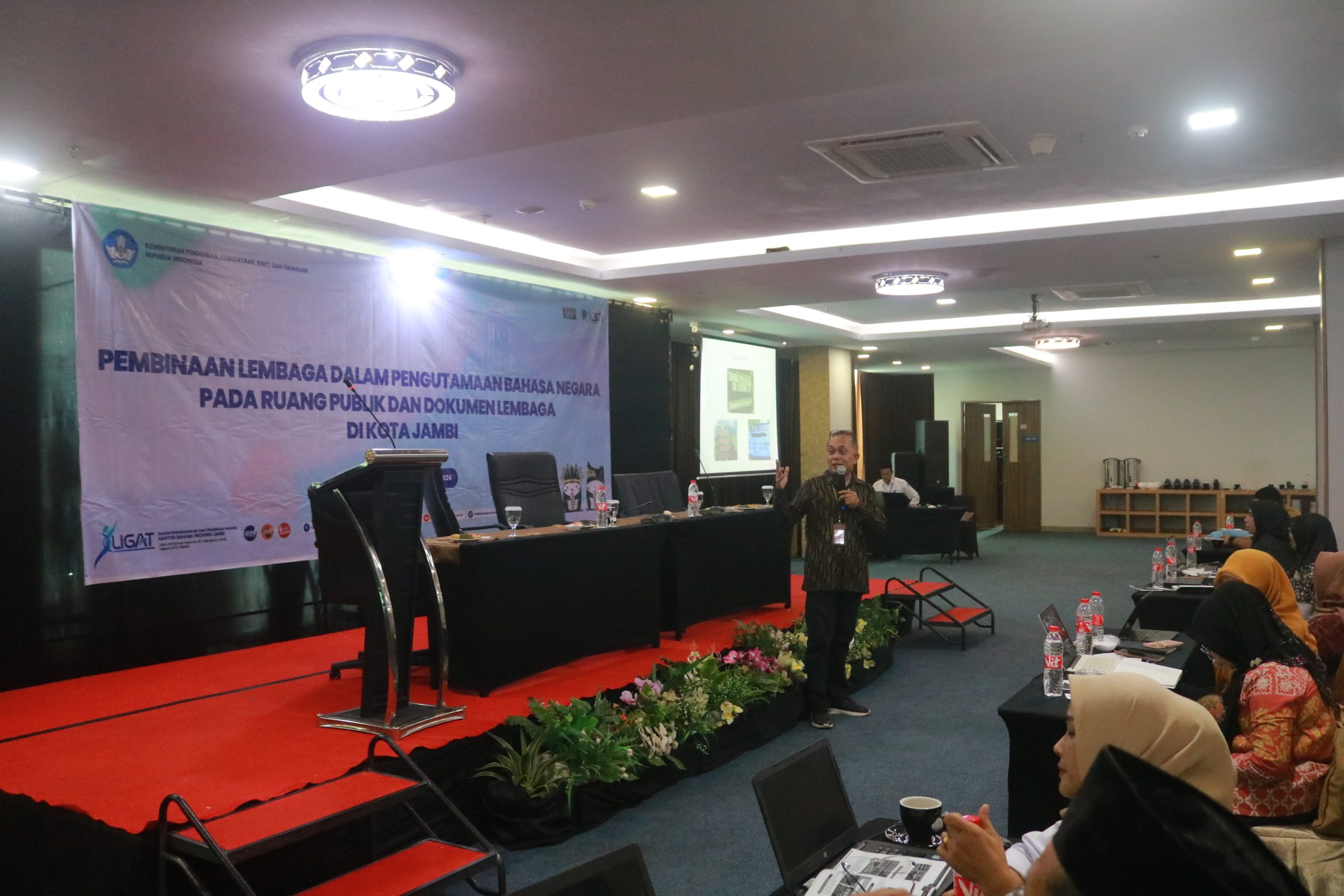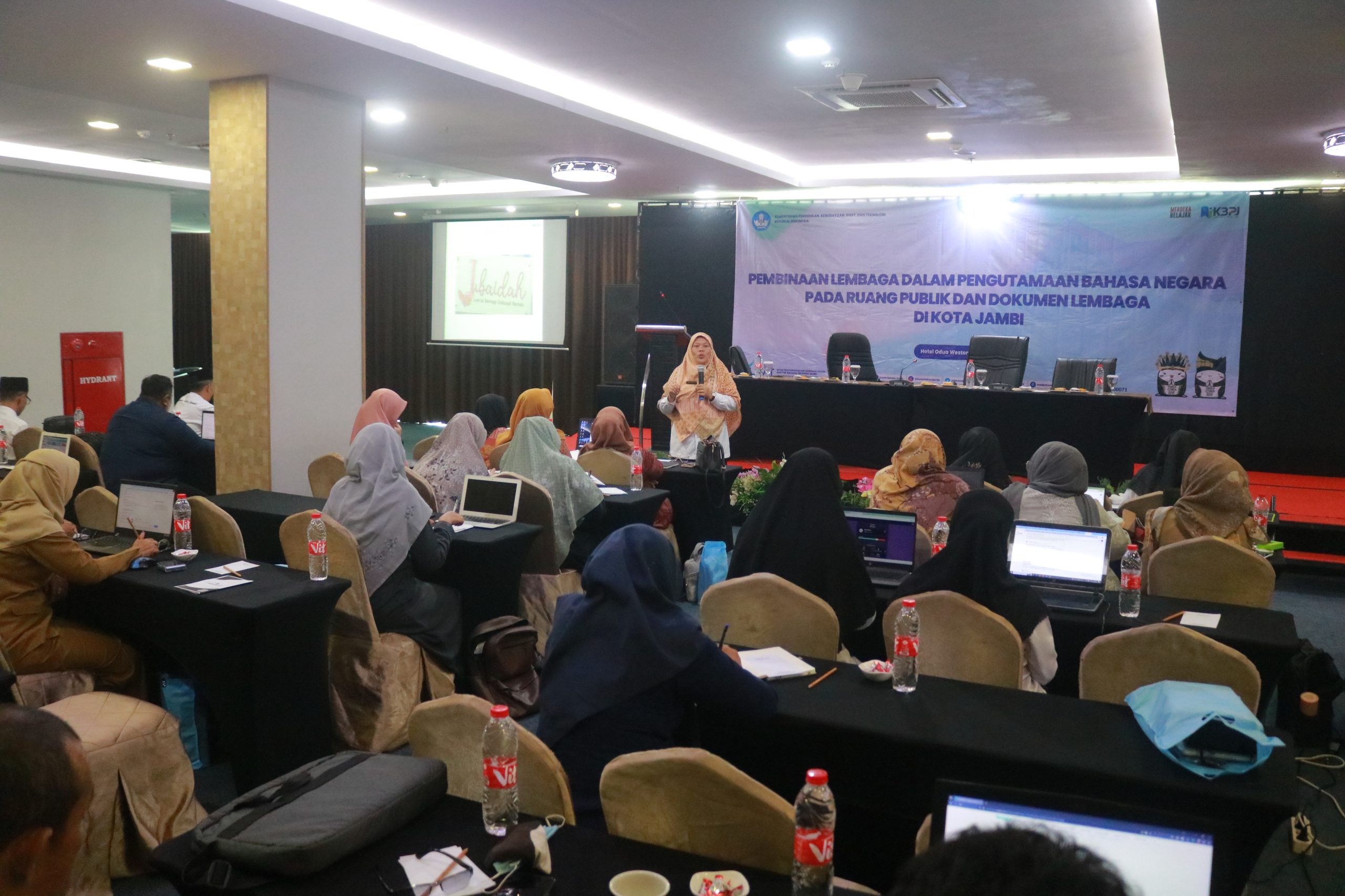Kantor Bahasa Provinsi Jambi melaksanakan Pembinaan Lembaga dalam Pengutamaan Bahasa Negara pada Ruang Publik dan Dokumen Lembaga Kota Jambi pada 6–8 Mei 2024 di Hotel Odua Weston, Kota Jambi. Kepala Kantor Bahasa Provinsi Jambi, Dr. Adi Budiwiyanto, M.Hum. menyampaikan sambutan terkait program prioritas Badan Bahasa. Selanjutnya, Drs. Mardiansyah mewakili Sekretaris Daerah Kota Jambi memberikan arahan dan sambutan. Dalam arahannya, Drs Mardiansyah menyampaikan penggunaan bahasa di ruang publik harus menjadi prioritas bersama begitu juga dengan tata naskah dinas di setiap instansi harus sesuai dengan acuan daerah masing-masing. Oleh karena itu, beliau berharap peran aktif peserta untuk mengikuti kegiatan ini hingga akhir.
