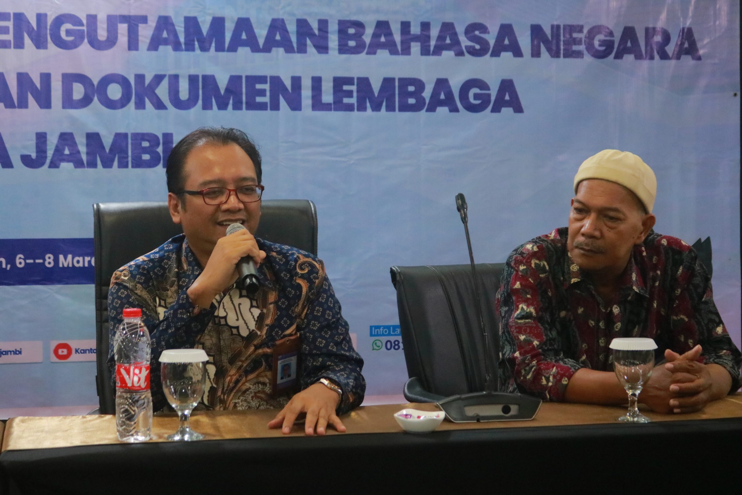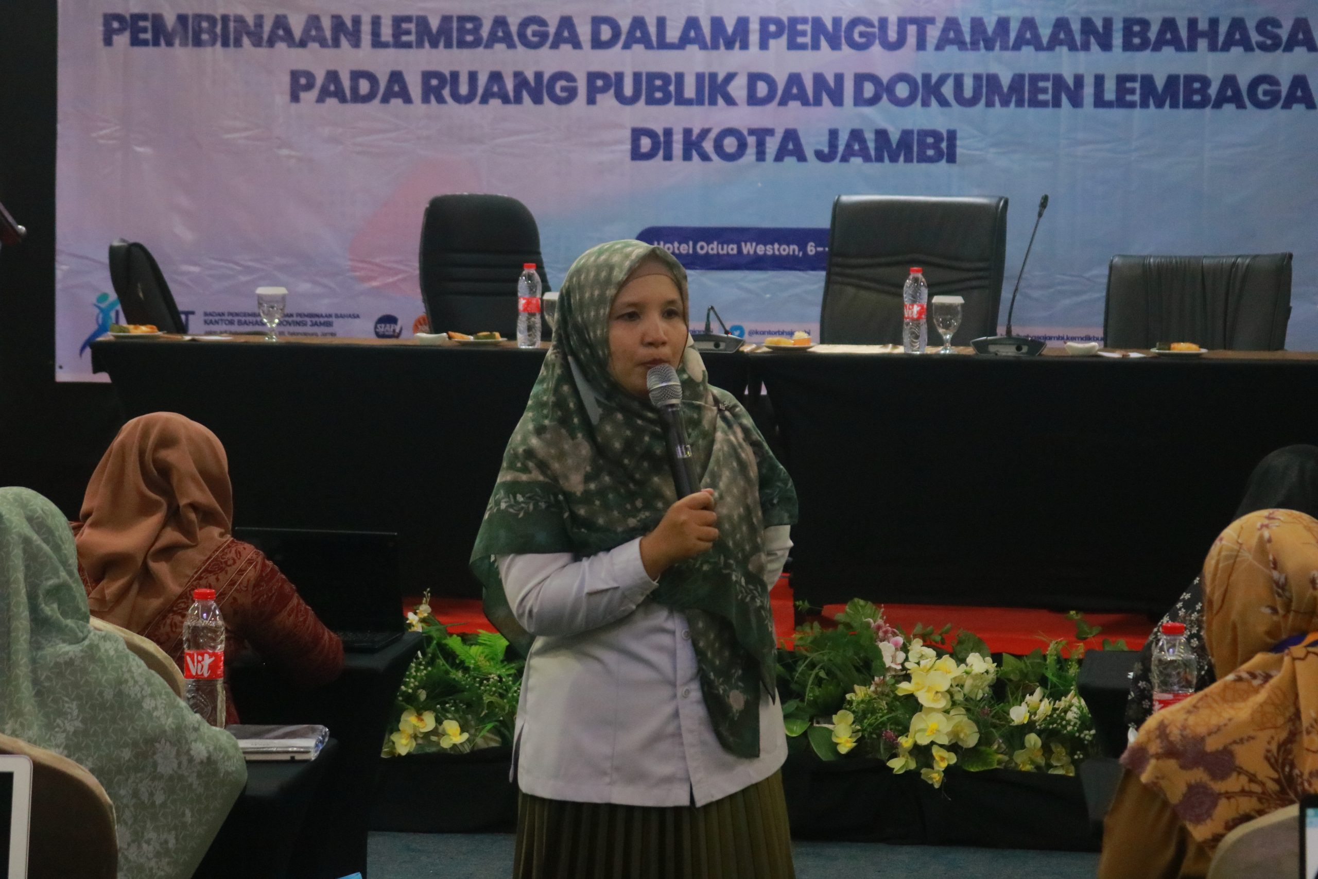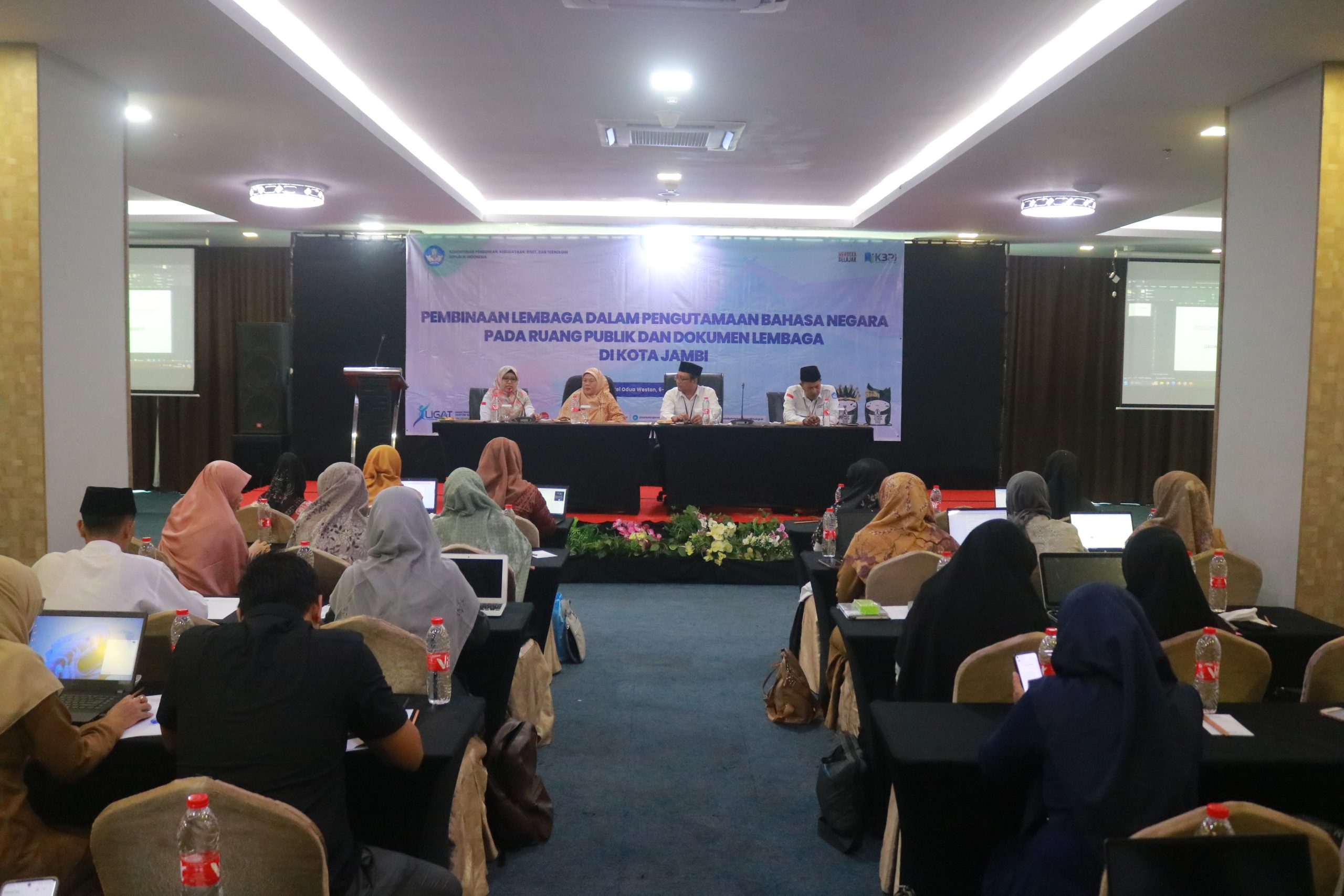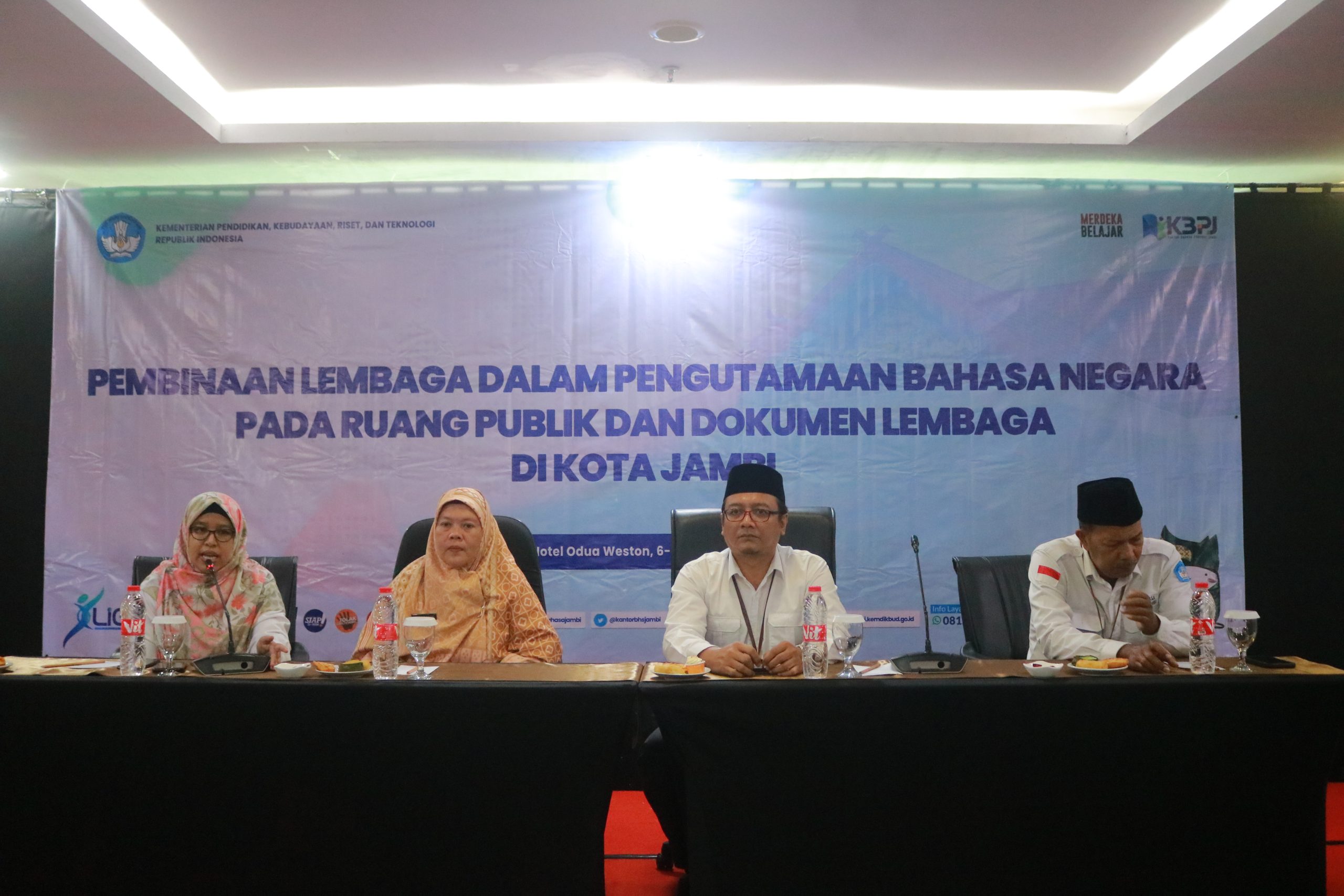 Kantor Bahasa Provinsi Jambi melaksanakan Pembinaan Lembaga dalam Pengutamaan Bahasa Negara pada Ruang Publik dan Dokumen Lembaga Kota Jambi pada 6–8 Mei 2024 di Hotel Odua Weston, Kota Jambi. Kepala Kantor Bahasa Provinsi Jambi, Dr. Adi Budiwiyanto, M.Hum. menyampaikan sambutan terkait program prioritas Badan Bahasa. Selanjutnya, Drs. Mardiansyah mewakili Sekretaris Daerah Kota Jambi memberikan arahan dan sambutan. Dalam arahannya, Drs Mardiansyah menyampaikan penggunaan bahasa di ruang publik harus menjadi prioritas bersama begitu juga dengan tata naskah dinas di setiap instansi harus sesuai dengan acuan daerah masing-masing. Oleh karena itu, beliau berharap peran aktif peserta untuk mengikuti kegiatan ini hingga akhir.