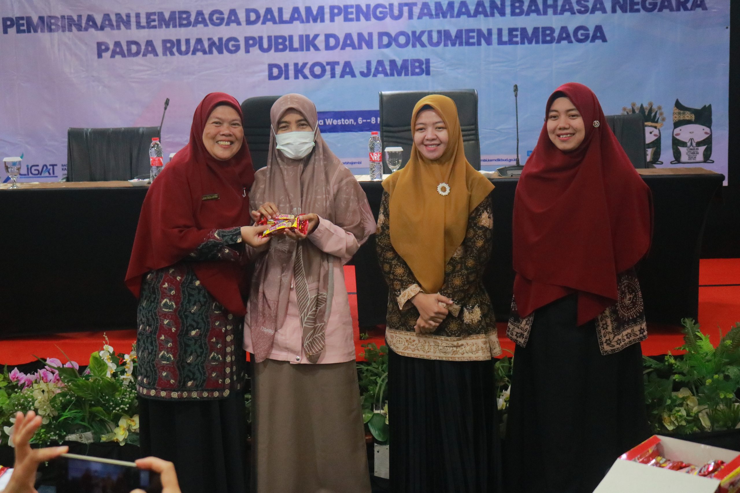 Tiga peserta dengan peningkatan nilai tes akhir tertinggi tersebut adalah Prihartini Kusuma, S.Pd. dari MTs PKP Al-Hidayah, Nanang Nur Rahman, S.E. dari Badan Pusat Statistik Kota Jambi dan Ayu Lestari dari SMAN 8 Kota Jambi. Selain itu, dua peserta dengan nilai tes UKBI tertinggi yaitu Teddy Haikal dari Kampoeng Radja perwakilan dari peserta laki-laki dan Indah Destya Sispa, S.H. dari Kantor Wilayah Kementerian Agama Provinsi Jambi perwakilan peserta perempuan mendapat suvenir dari KKLP UKBI.