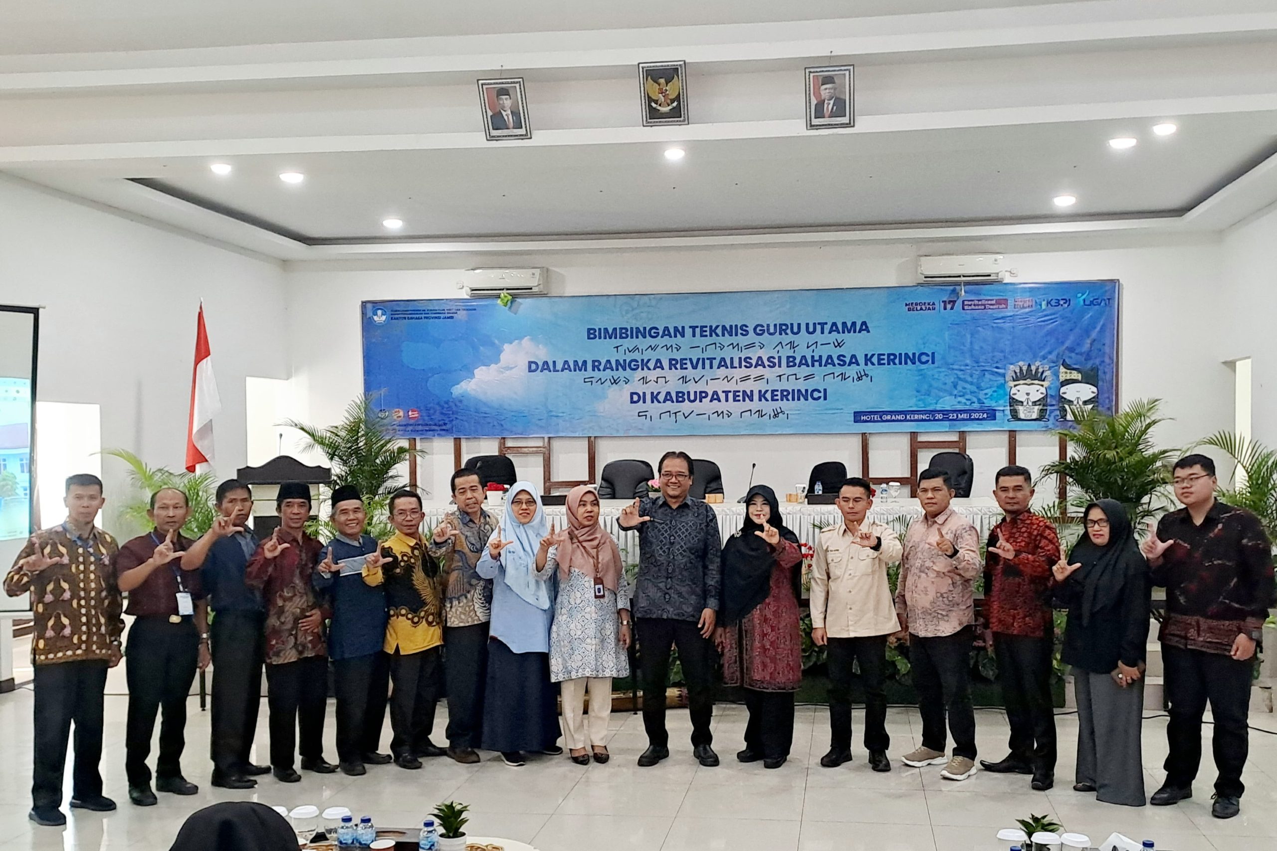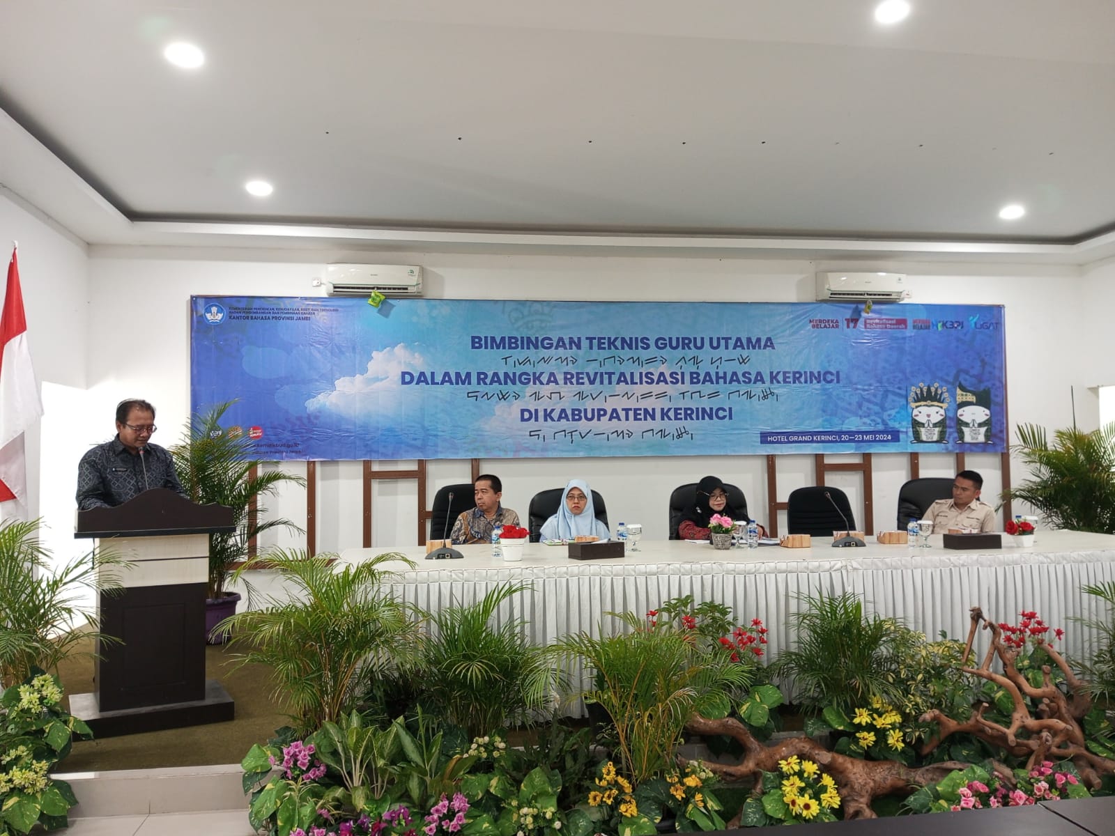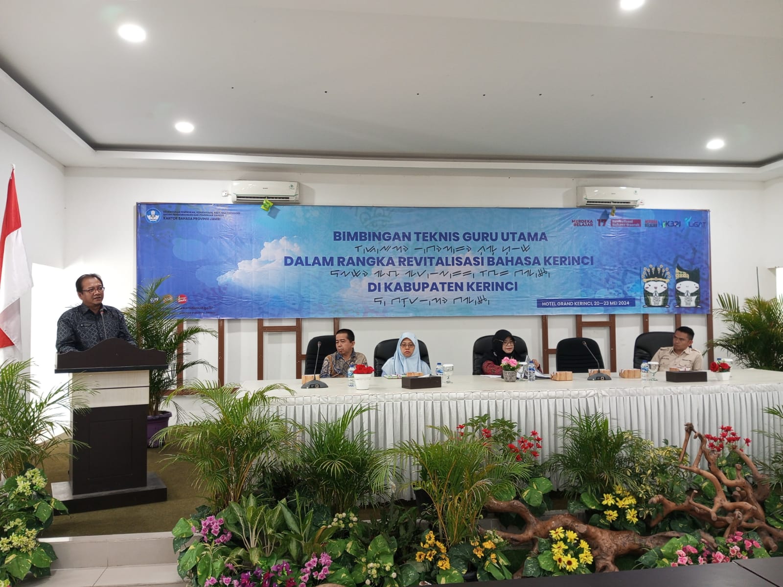 Kamis, 23 Mei 2024, Asisten Pemerintahan dan Kesejahteraan Rakyat Kabupaten Kerinci, Dra. Linda Martiani, M.M. resmi menutup kegiatan Bimbingan Teknis Guru Utama dalam Rangka Revitalisasi Bahasa Daerah (RBD) Kerinci di Kabupaten Kerinci. Linda berpesan agar para peserta yang telah menjadi guru utama dapat mempraktikkan dan menjalankan tugasnya dengan baik, yaitu memberikan pengimbasan kepada rekan-rekan guru lainnya serta menyukseskan Festival Tunas Bahasa Ibu (FTBI).