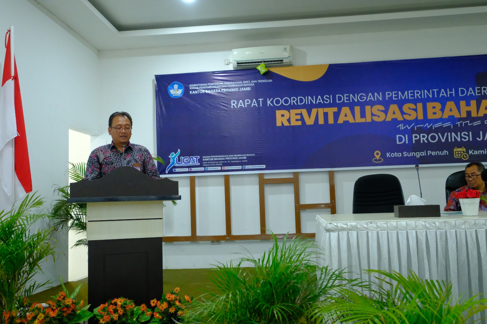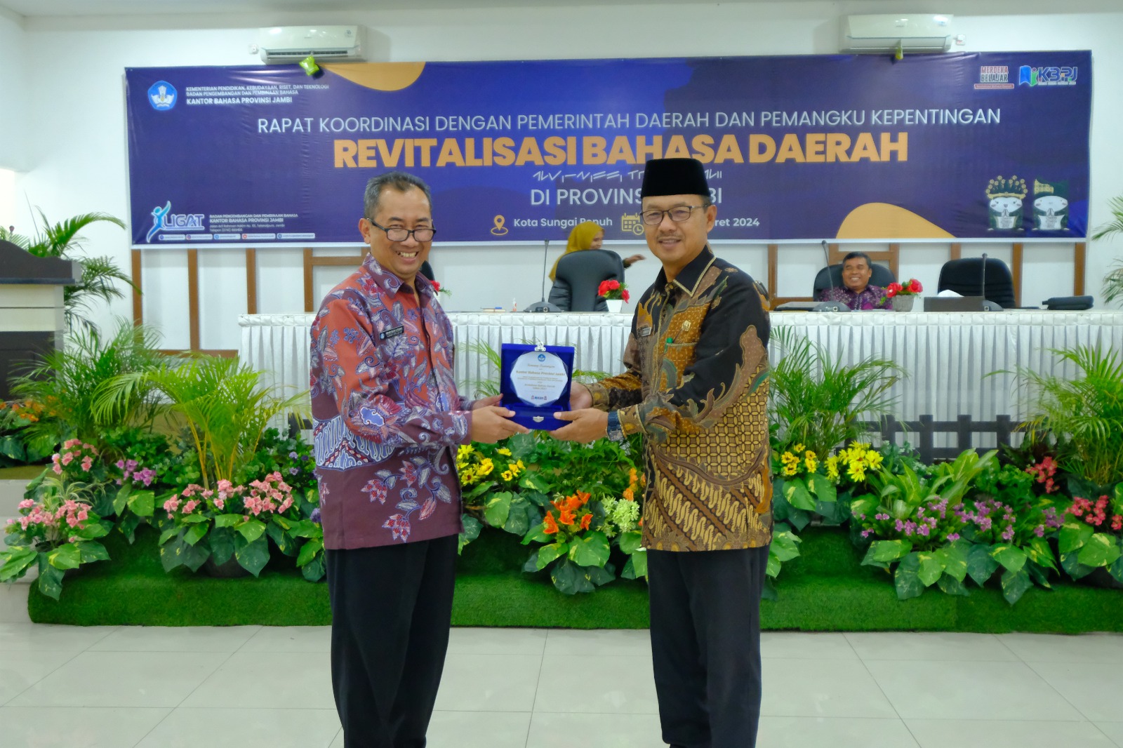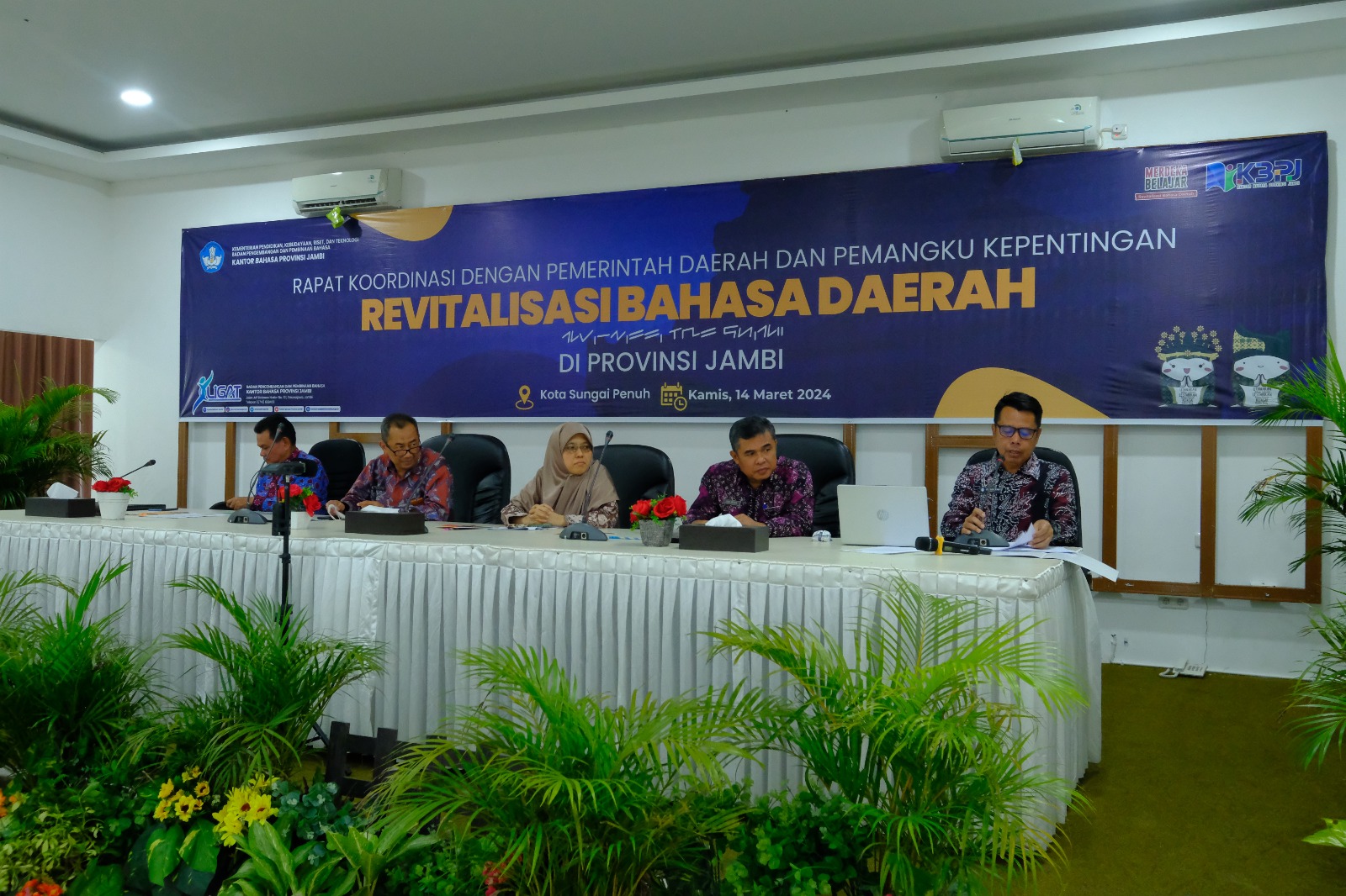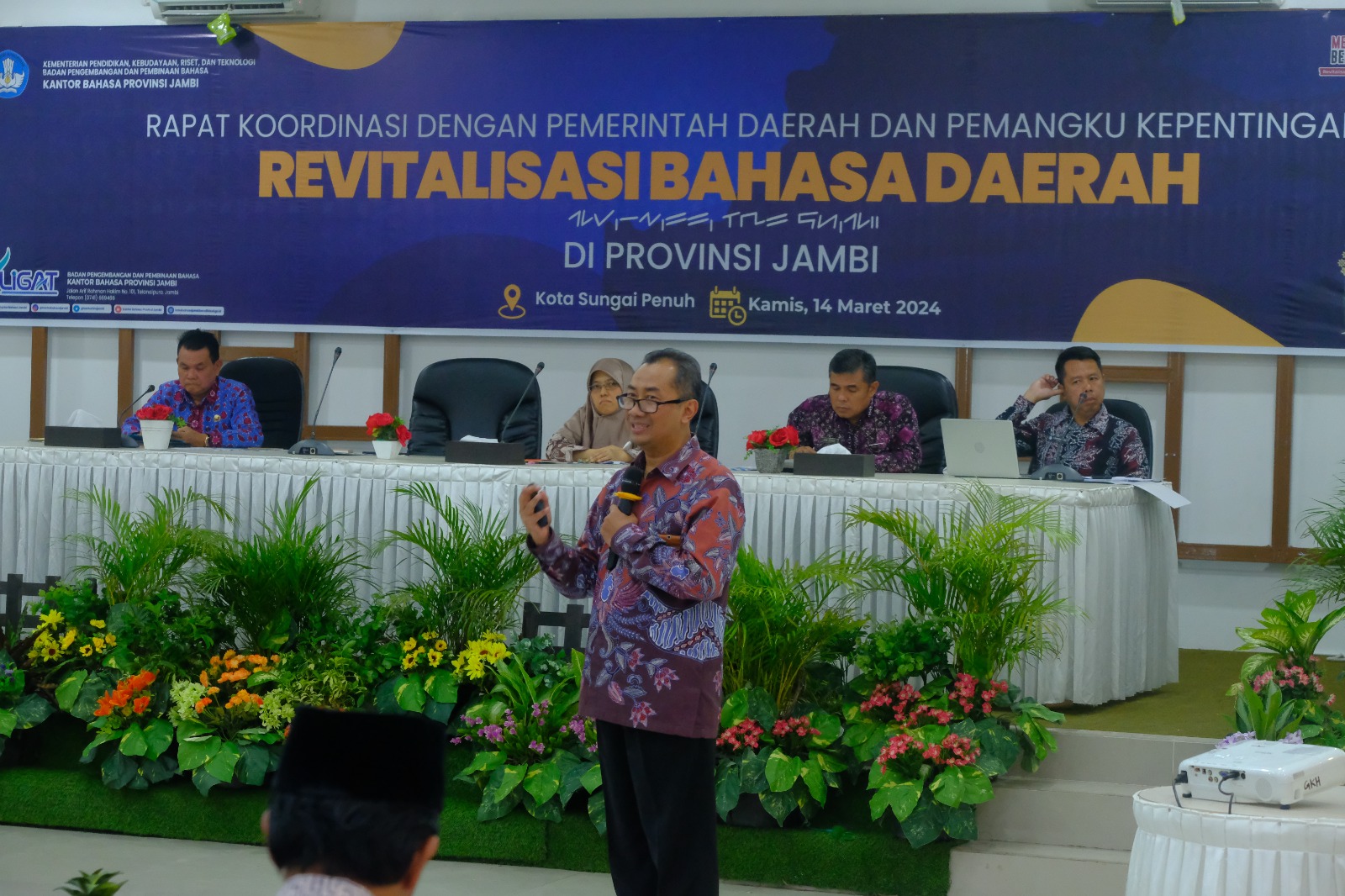 Kantor Bahasa Provinsi Jambi melaksanakan Rapat Koordinasi Revitalisasi Bahasa Daerah (RBD) dengan Pemerintah Daerah dan Pemangku Kepentingan di Hotel Grand Kerinci pada14 Maret 2024. Asisten I Sekretariat Daerah Kota Sungai Penuh, Yulia Rosa, S.E., M.Si. membuka kegiatan. Kegiatan ini menghadirkan narasumber, yaitu Prof. Dr. Nadra, M.S., Ernanda, S.Pd., M.A., Ph.D., Joni Zeber, S.H., M.H., dan Dr. Yannizar, S.E., M.Si.. Peserta yang hadir, di antaranya, Kepala Dinas Pendidikan Kota Sungai Penuh dan Kabupaten Kerinci, serta Kepala Bappeda Kota Sungai Penuh dan Kabupaten Kerinci.