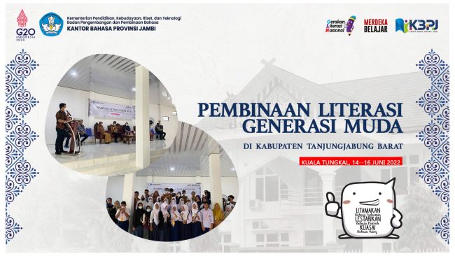 Kantor Bahasa Provinsi Jambi menyelenggarakan kegiatan Pembinaan Literasi Generasi Muda di Kabupaten Tanjungjabung Barat, Selasa (14/6/2022). Pembinaan Literasi Generasi Muda ini bertujuan untuk menggiatkan aktivitas berliterasi masyarakat mencakup guru dan siswa sekolah menengah pertama (SMP) yang ada di Kabupaten Tanjungjabung Barat. Kegiatan yang dilaksanakan pada 14—16 Juni 2022 ini dibuka oleh Kepala Dinas Pendidikan dan…